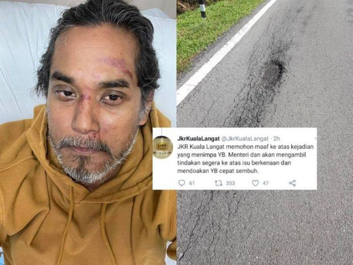 Kamarul Afiq As-Subanji berkata, “Banyak dah rakyat marhaen cedera sebab jalan yang macam har*m. Bila menteri yang kena baru nak menggelabah.”