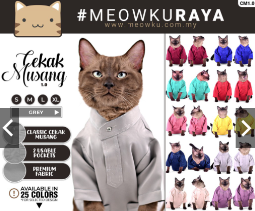 Tak percaya? Jom tengok antara koleksi baju-baju raya kucing untuk tahun ini.
