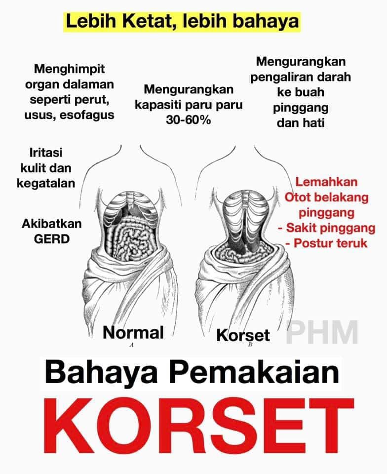 Jadi, elakkan pemakaian korset dalam tempoh masa yang lama kerana ia hanya akan memudaratkan kesihatan dan tubuh badan korang. Jangan ambil jalan mudah untuk tampil cantik.