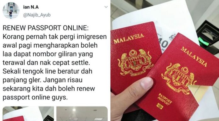 Jabatan Imigresen Malaysia juga menyarankan agar orang ramai memperbaharui passport mereka secara online tanpa perlu ke kaunter.