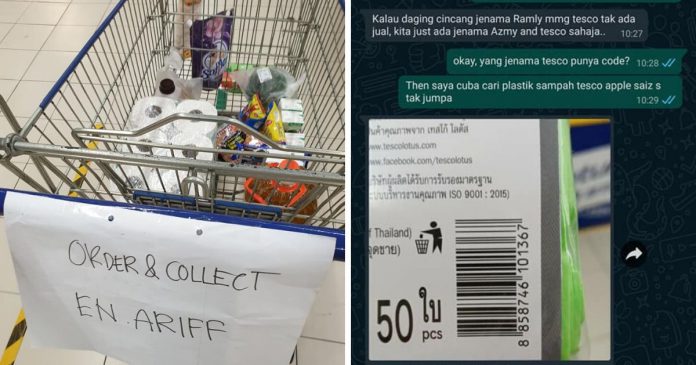Menurut perkongsian daripada Ariff Iskandar Sa’id, kaedah yang digunakan Tesco ini sudah pun dimulakan beberapa hari lepas. Paling senang dan convenient kerana korang beri sahaja list panjang berjela dekat personal shopper Tesco yang berdekatan, selepas itu mereka akan sediakan barangan yang korang nak beli.