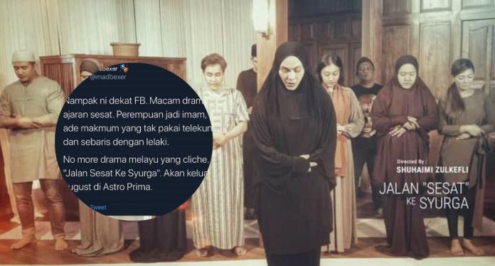 Namun, poster drama ini menjadi bualan netizen apabila memaparkan perempuan menjadi imam dalam satu solat berjemaah.