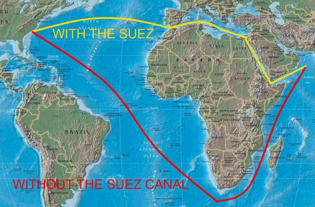 Terusan yang dibuka pada tahun 1869 ini menjadi hab penghubung laluan perdagangan antarabangsa yang sangat sibuk di dunia. Pembukaannya bukan sahaja memendekkan jarak tetapi juga menjimatkan.
