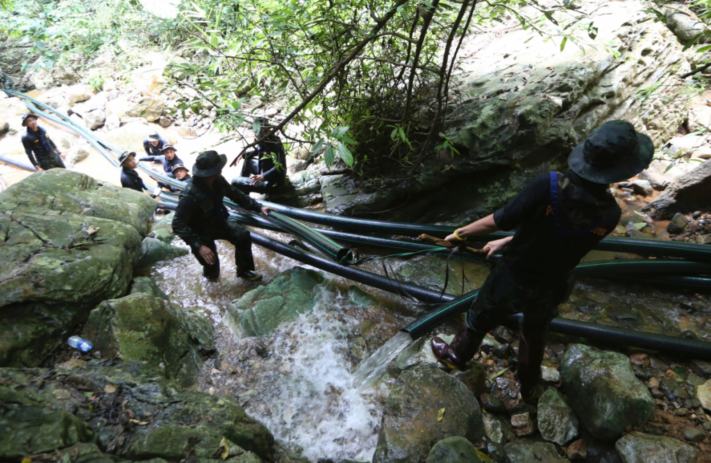 Untuk penyelamat sampai jauh ke dalam gua, air banjir dipam secara besar-besaran, hampir 130 juta liter air mengalir keluar di pergunungan. Bila Bua Chaichuen pulang semula ke kampung, sawah beliau tenggelam dan habis musnah.