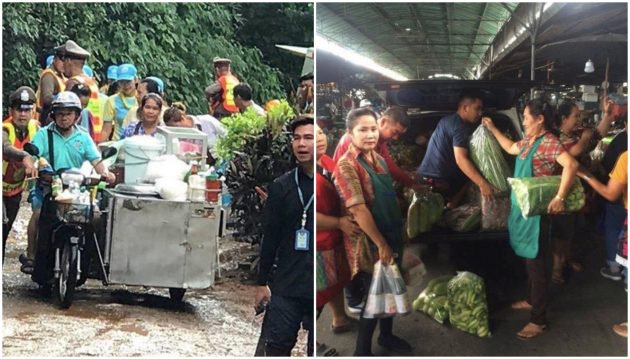 5) Mereka yang berniaga dipasar setiap hari menghantar pelbagai jenis sayur dan bahan mentah secara percuma, dan sukarelawan pula memasak tanpa henti untuk para penyelamat.