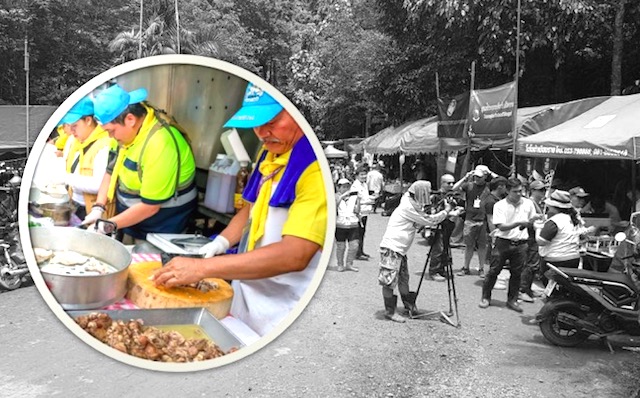 6) Bua Chaicheun, seorang penanam padi bergegas tinggalkan tanamannya dan beliau antara yang menawarkan diri sebagai tukang masak di lokasi gua.