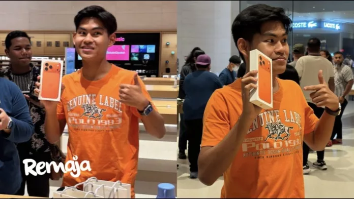 Menariknya, pelanggan pertama yang berjaya mendapatkan iPhone 17 ialah Danial Arif bin Abdul Halim, pelajar berusia 19 tahun dari Universiti Teknologi MARA (UiTM).
