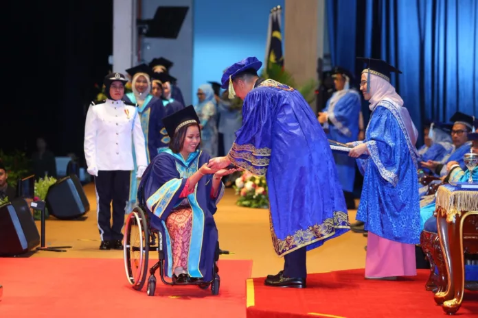 “Namun, dari situlah saya berazam untuk bangkit sebagai pelajar orang kurang upaya (OKU) yang baharu dan berdikari setelah mendapat sokongan pensyarah dan rakan-rakan. Alhamdulillah, saya berjaya menamatkan pengajian dengan pencapaian CGPA 3.55,” jelas Bella.