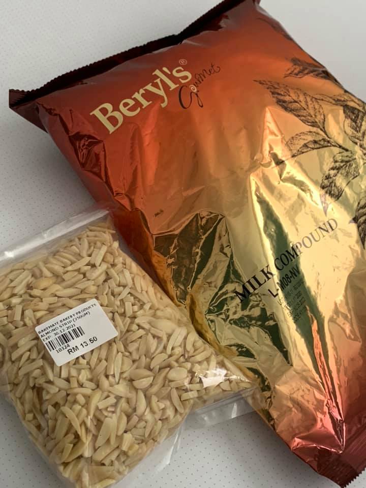 - Masukkan badam dalam coklat yang dah cair, gaul dan masukkan dalam acuan kemudian sejukkan.