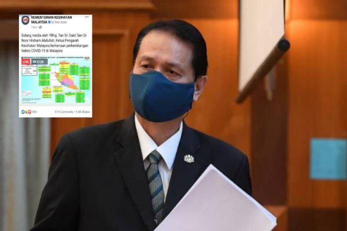 Tapi ada sesuatu yang lebih menarik sebelum sidang media itu berlangsung, seramai 212 ribu sudah menanti di hadapan telefon masing-masing untuk mengikuti sidang media khas ini di page Kementerian Kesihatan Malaysia sekaligus membuktikan ramai yang cakna dan prihatin dengan kesihatan diri masing-masing.