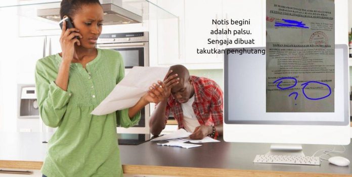 *Gambar dibawah adalah contoh notis palsu yang digunakan dalam proses mendesak pengguna membayar hutang.