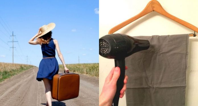 Alat pengering rambut boleh bertindak menjadi seterika pakaian pada waktu-waktu kecemasan. Set kan pengering rambut pada suhu yang paling tinggi dan arahkan kepada kesan kedutan di pakaian tersebut.