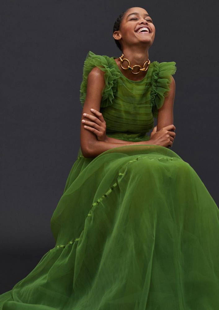 Mimi Lana nampak anggun bagaikan Puteri Perak. Busana rona hijau pekat dan selendang rona emas menyerlahkan kemewahan. Sumber gambar: Instagram Mimi Lana