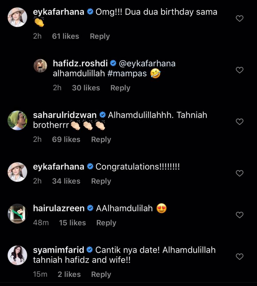 Rata-rata rakan selebriti turut mengucapkan tahniah dan tumpang gembira dengan perkhabaran ini.