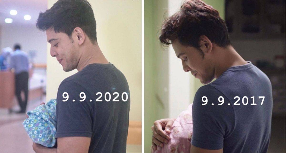 Menariknya, finalis Hero Remaja 2011/2012 ini menyarungkan baju yang sama ketika dirinya menyambut kelahiran anak pertamanya, Humairah pada 9 September 2017 iaitu 3 tahun yang lepas.