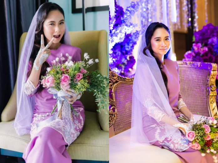 Tampak cantik dengan busana berwarna ungu, Intan, 22 tahun juga sempat membuat appreciation post terhadap tunangnya apatah lagi dengan jarak usia mereka sebanyak 16 tahun.