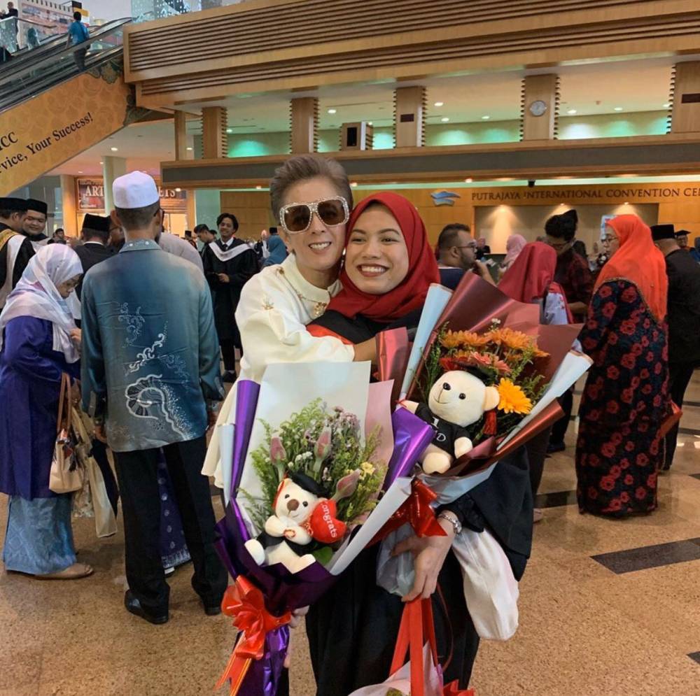 “Muka ibu yang sangat bahagia bila anak menghadiahkan segulung ijazah. Alhamdullillah terima kasih Allah, walaupun badan ni kadang tak mampu lagi nak mengayuh untuk mencari rezeki, kerana diorang jugalah semangat mummy tak pernah luntur mencari rezeki untuk mereka mencapai cita-cita hingga ke menara gading. Tahniah @yodaney_ mengikut jejak kakak dan abang, we are so proud of you.”