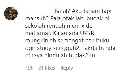 “Adalah normal untuk seseorang merasa malu, rasa kecewa dan hilang keyakinan apabila dimalukan dikhalayak umum. Sedangkan dimarahi dihadapan kelas pun terasa rasa malu dan trauma, apatah lagi di siaran tv yang di tonton jutaan penonton secara langsung!” coretnya panjang menerusi itu satu kenyataan di platform tersebut.