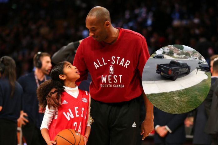 Kedua-dua kamera keselamatan itu menunjukkan jam 9.45 pagi di kawasan bukit Calabasas.