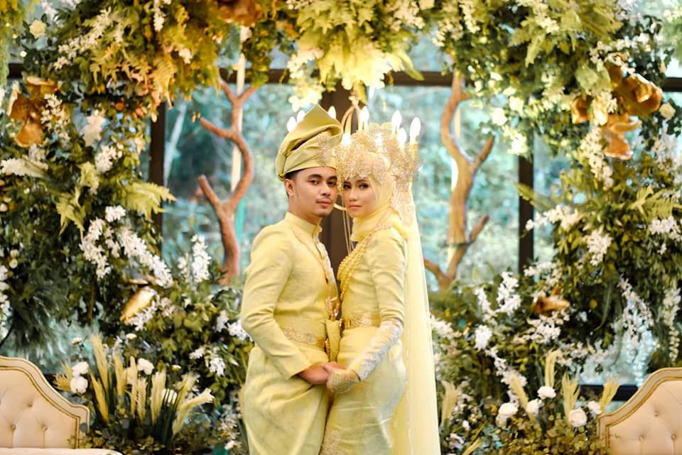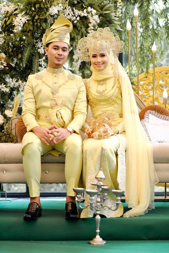 Indah mengenakan pakaian berona kuning seakan warna diraja, Alha Alfa atau nama sebenarnya Datuk Abdul Al Halim Mohd Al Fadzil dan isteri Datin Noor Azlin Ismail dilihat begitu secocok bersesuaian gelaran raja sehari kepada pasangan mempelai.