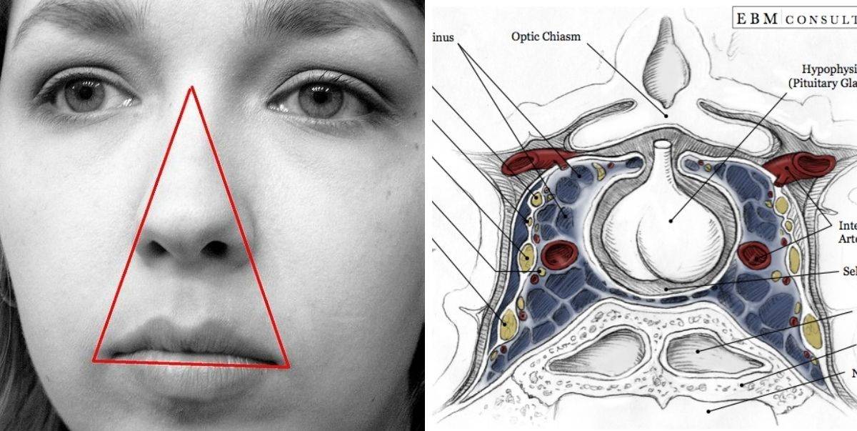 Segitiga ini bermula daripada pangkal hidung dan ia membawa kepada hujung bahagian mulut. Kesemua kawasan ini akan membawa darah terus ke satu kawasan yang dinamakan sebagai Cavernous Sinus.