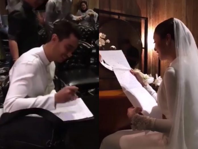 Akhirnya, pelakon Zahirah Macwilson selamat diijab kabulkan kepada Aiman Hakim Ridza dalam sebuah majlis pernikahan, sebentar tadi.