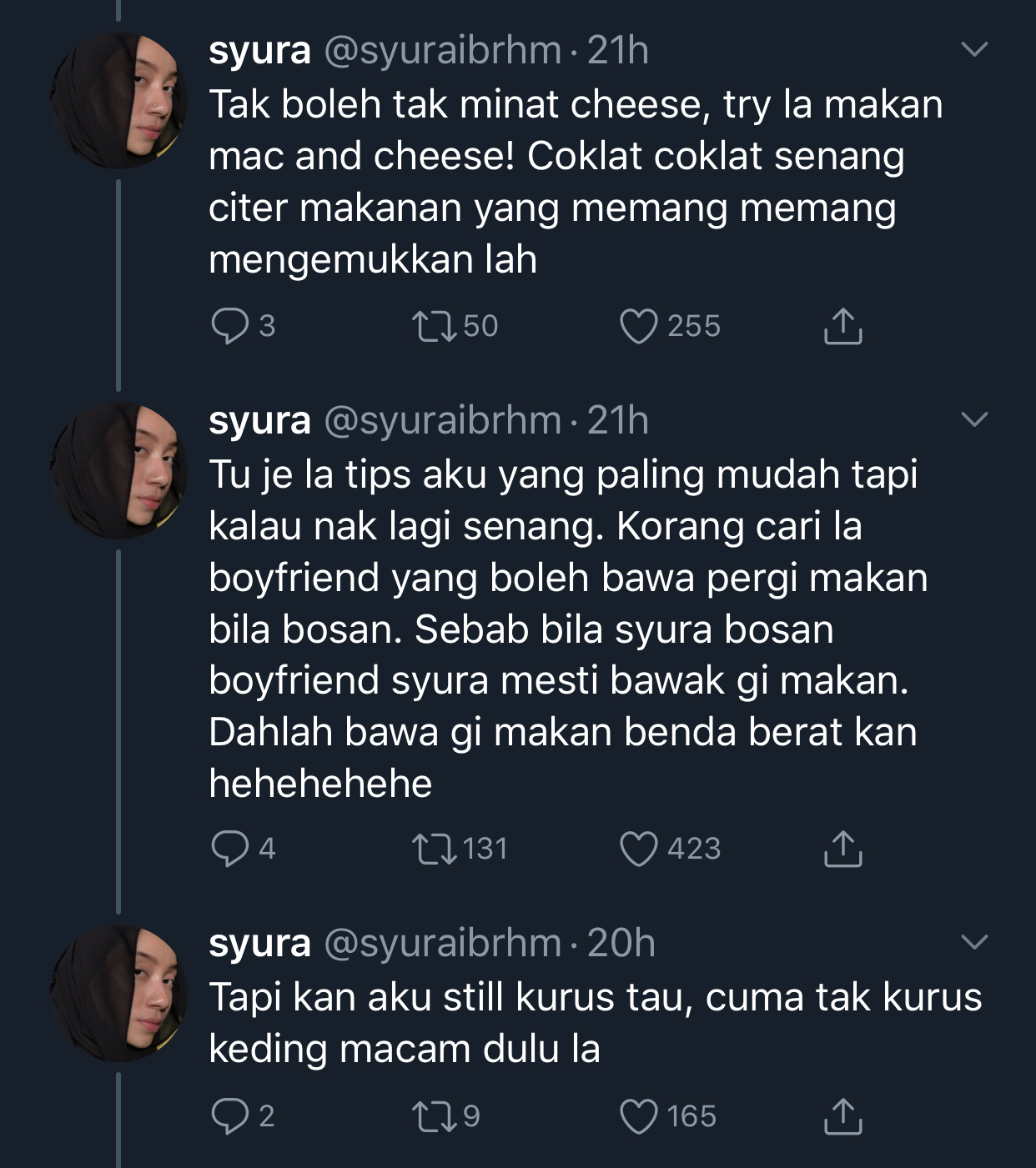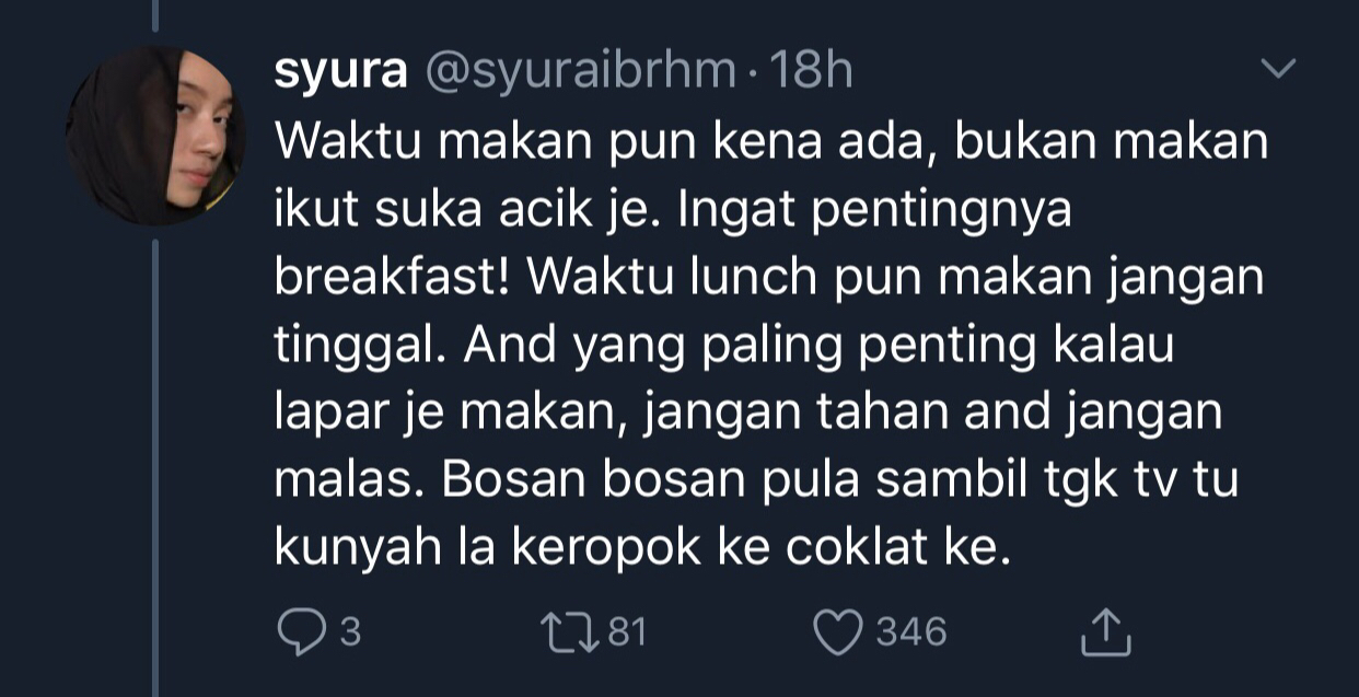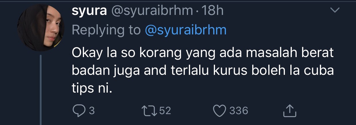 Seorang pengguna Twitter @syuraibrhm telah berkongsikan beberapa tips ringkas bagi menambahkan berat badan