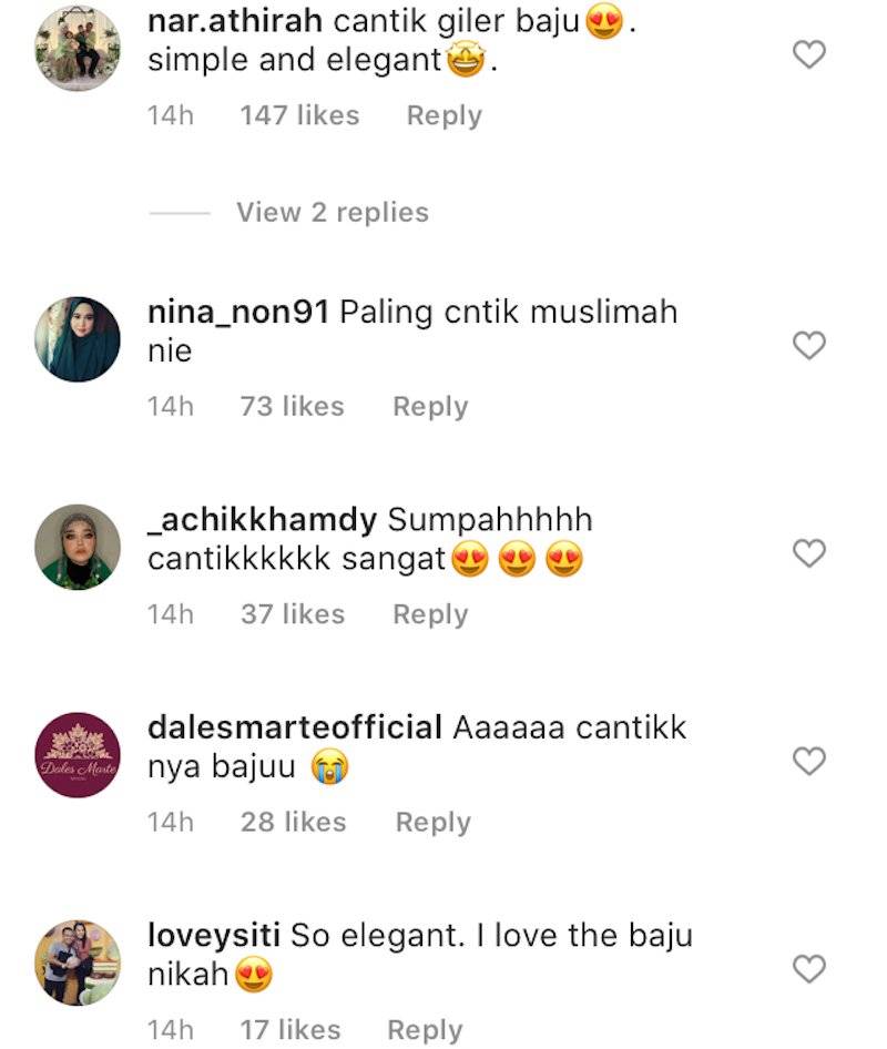 Baju Kurung Pahang rekaan Rizman Ruzaini ini telah mendapat perhatian warganet yang tidak henti-henti memuji penampilannya semalam semasa majlis pernikahannya.
