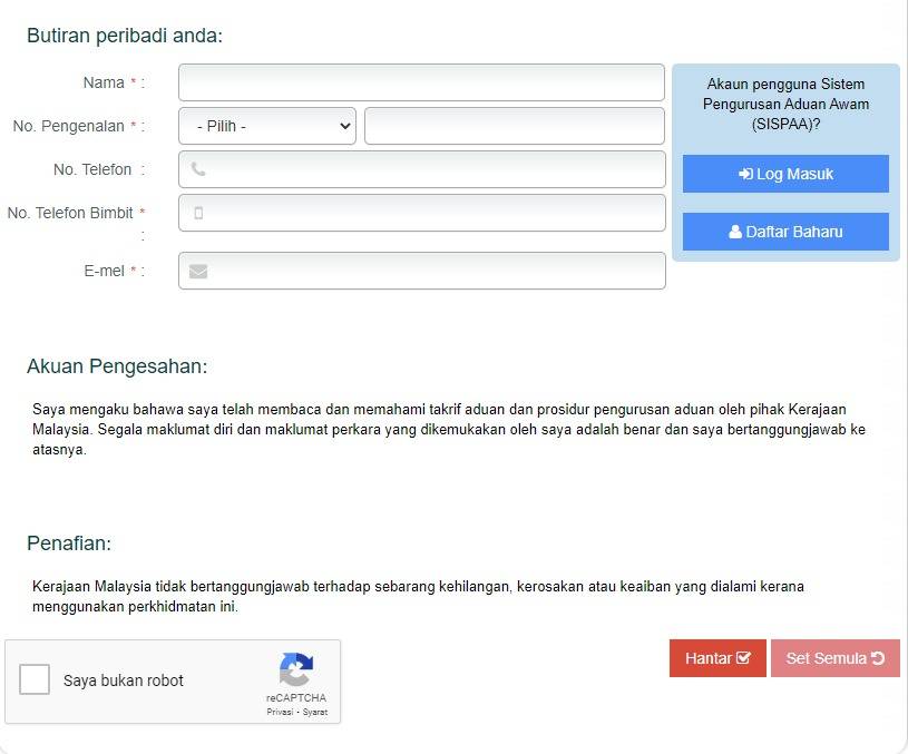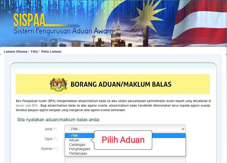 4) Pergi ke Portal Rasmi Biro Pengaduan Awam, Pusat Gorvenans Intergriti dan Anti-Rasuah Nasional, di bawah Jabatan Perdana Menteri dan buat aduan di sini. Aduan boleh dibuat secara online atau di kaunter. Borang online seperti dalam gambar. Link ada diruang komen.