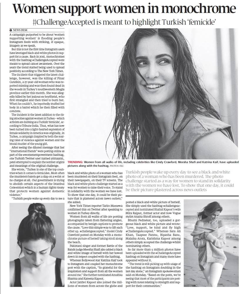 Hashtag #ChallengeAccepted dan #WomenSupportingWomen yang kini sedang trending pada asalnya adalah inisiatif wanita Turki untuk membawa kesedaran tentang keganasan dalam kalangan ahli keluarga mereka sendiri.
