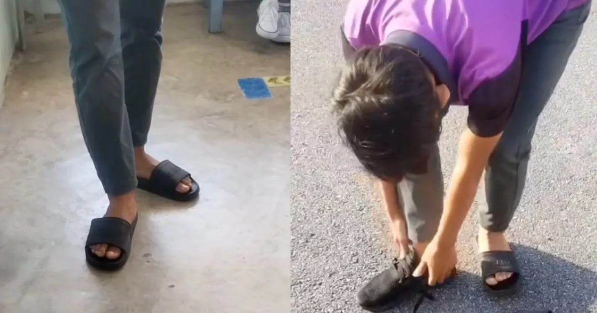 Teguran itu bukan berkaitan disiplin atau pelajaran, tetapi sesuatu yang lebih asas keadaan kasut sekolah murid tersebut.
