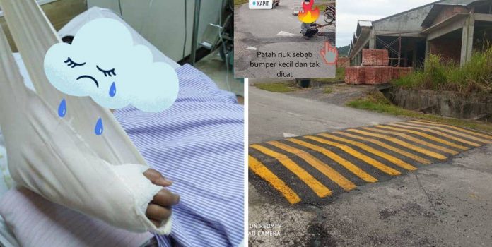 Di fb melalui Brotherhood Kuching pada 19 hb, mereka kongsikan satu kejadian seorang pengguna jalan raya di Kapit, Sarawak yang mengalami patah tangan selepas terlanggar bumper kecil (langsung tidak dicat kuning) sebelum ini yang mengakibatkan penunggang motosikal itu alami kecederaan parah.
