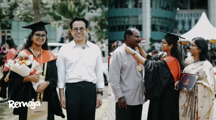 “Dia bukan sahaja lulus pengajian malah telah dapat pingat pelajar cemerlang, 3 kali dapat Anugerah Dekan,” tambahnya lagi.