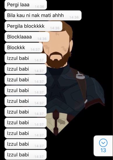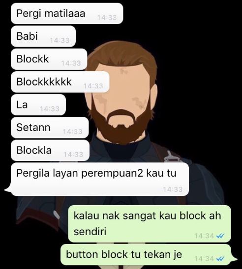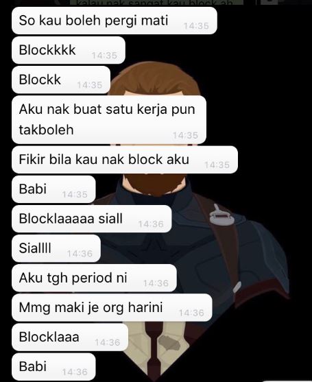 Ahh, memalukan kaum perempuan betul budak ni. Hiks! Jangan salahkan haid kalau perangai dah memang macam tu. Betul tak?