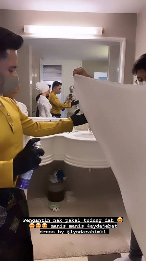 “Ayda yang pakai tudung dia sendiri. Seriously, pengantin pakai tudung sendiri. Dia tu kalau boleh semua benda nak buat sendiri, independent sangat.