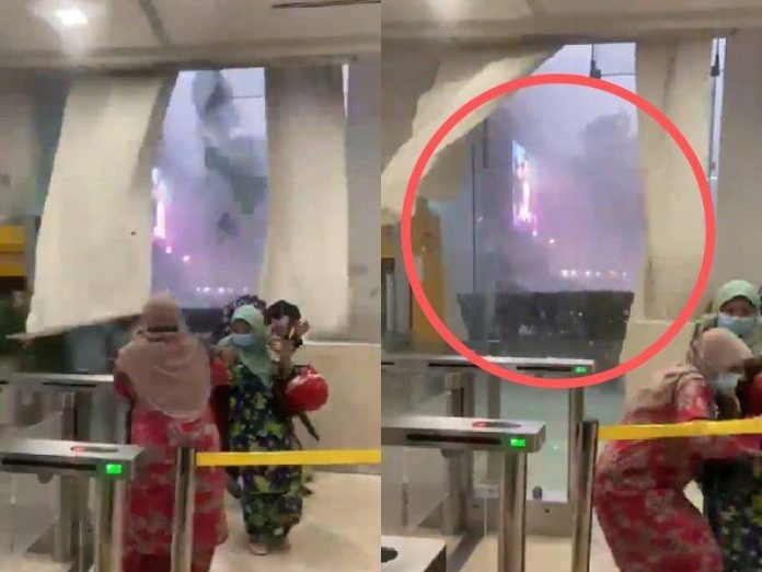Satu video insiden yang kin tular di media sosial menunjukkan sekurang-kurangnya empat orang wanita menjerit dan berlari jauh daripada kawasan dinding cermin berdekatan dengan sebuah mesin ATM Maybank.