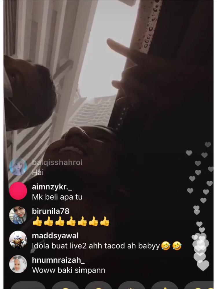Tidak langsung memberhentikan sesi IG livenya itu, MK terus melayan tiga orang penjual yang menyapanya di dalam kereta, lalu mempromosi barangan yang dijual mereka.