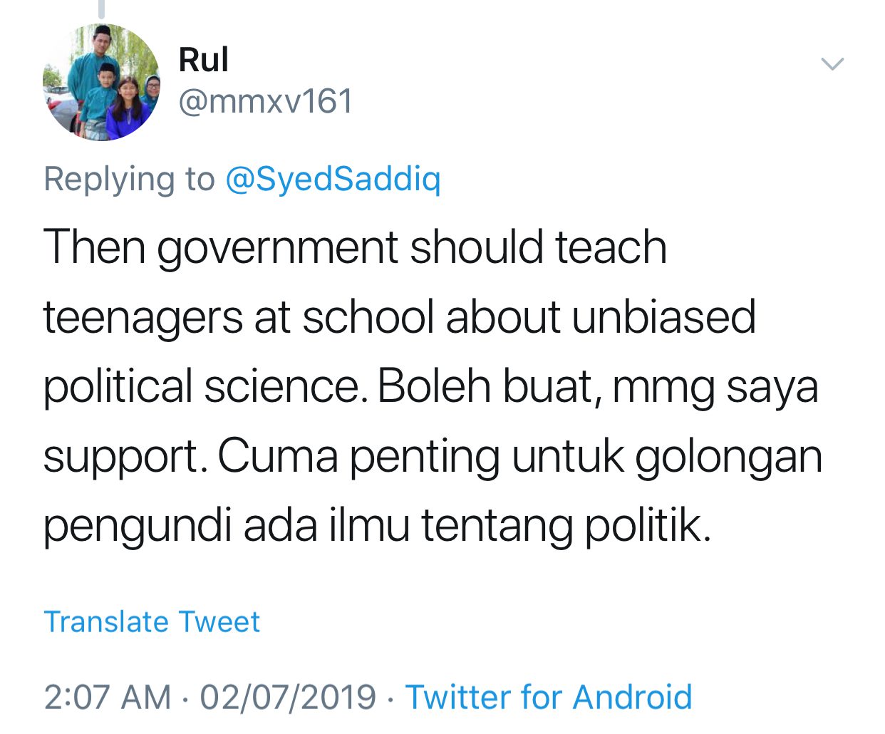 Hm, biasalah bukan semua orang suka dengan tindakan kita dan ada sahaja yang nak dipertikaikan. Seperti yang diperkatakan oleh Syed Saddiq, banyak lagi isu penting yang perlu kita ambil perhatian dan bukannya membahaskan perkara-perkara yang tidak memberi manfaat ini.