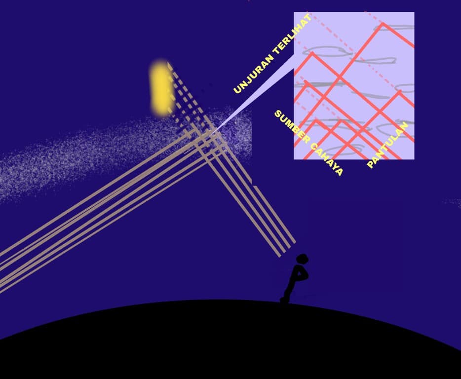 Formasinya secara teori adalah disebabkan kristal leper bersegi enam yang secara fiziknya berkedudukan pipih melintang yang menyebabkan cahaya matahari yang telah terbenam di dan menyuluhnya dari bawah dipantul mengunjur melurusi pemandangan pemerhati dan formasi menegak terjadi.