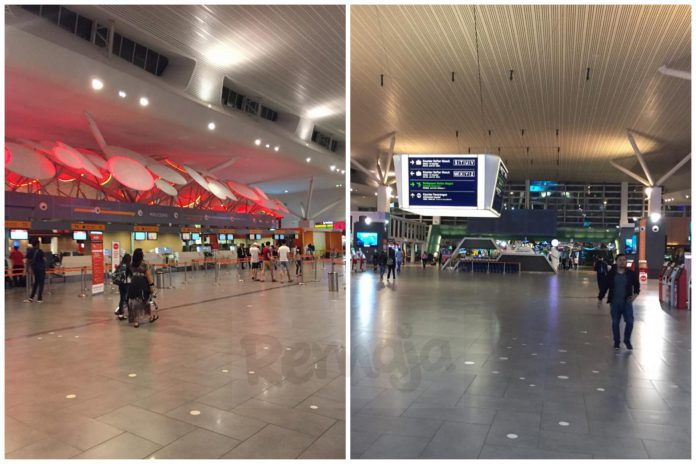 Tinjauan penulis di Lapangan Terbang Antarabangsa (KLIA 2) pada hari ini menunjukkan keadaan lengang di balai berlepas, sekitar tengah malam.