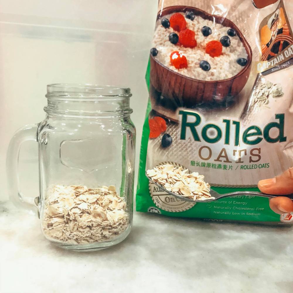 1. Letakkan 2 hingga 3 sudu besar rolled oats