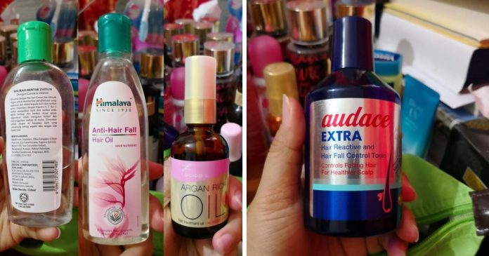 Firstly, sebelum korang plan nak cuci rambut, pakai hair oil terlebih dahulu. Tak kisah la brand apa-apa pun yang penting fungsinya sebagai minyak rambut. Pakai dalam kuantiti yang banyak sampai korang rasa geli nak pegang rambut sendiri.