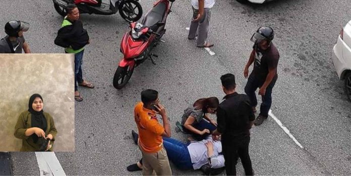 “Akibat brek mengejut (atas faktor keselamatan) adik yang menunggang motosikal di bahagian tepi telah tersasar sedikit ke besi pembahagi jalan dan tiba-tiba terasa dia tubuhnya melayang ke bawah.