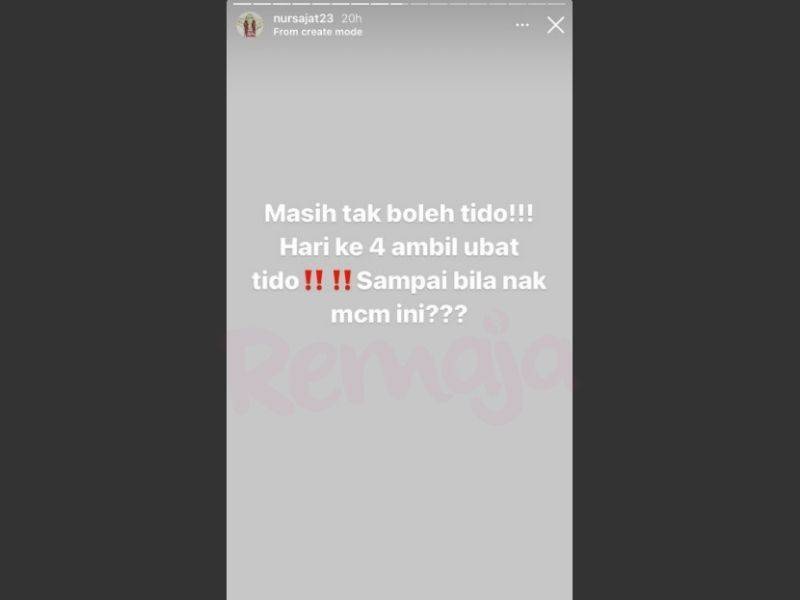 Semalam menerusi paparan Instagram Stories, Nur Sajat menceritakan betapa sukarnya dia untuk melelapkan mata. Memasuki hari keempat mengambil pil tidur demi mendapatkan rehat, dia tertanya-tanya sampai bilakah keadaan ini akan berlarutan.