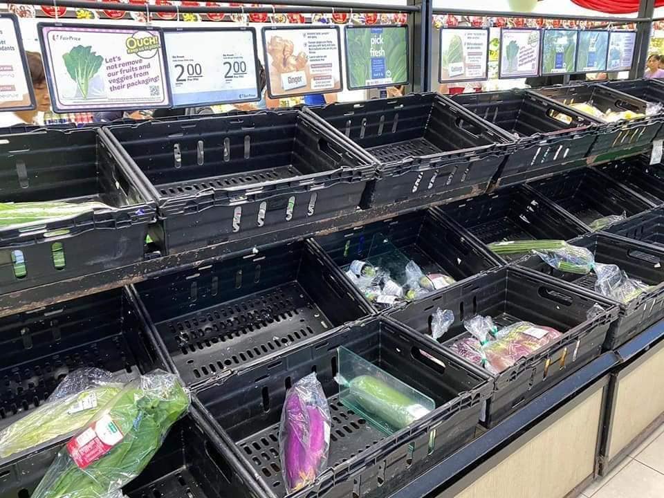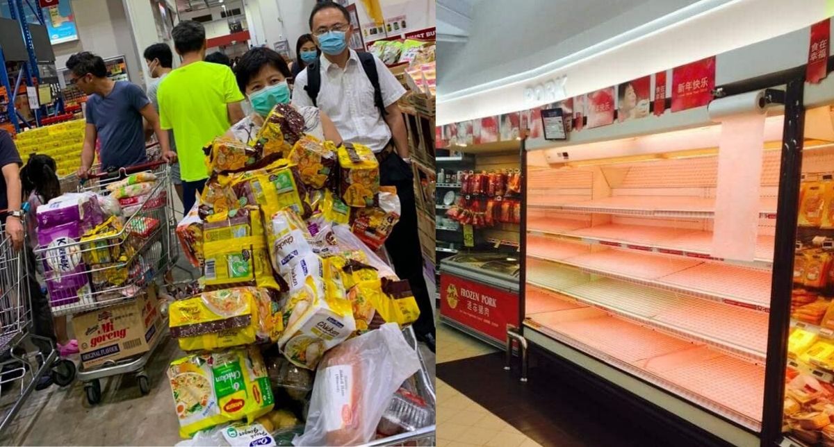 Dalam satu perkongsian oleh seorang pengguna Facebook, Eric Teoh semalam memaparkan beberapa tempat meletakkan bekalan barangan di sebuah pasar raya di Singapura sudah kosong, antaranya tisu dan mi segera.