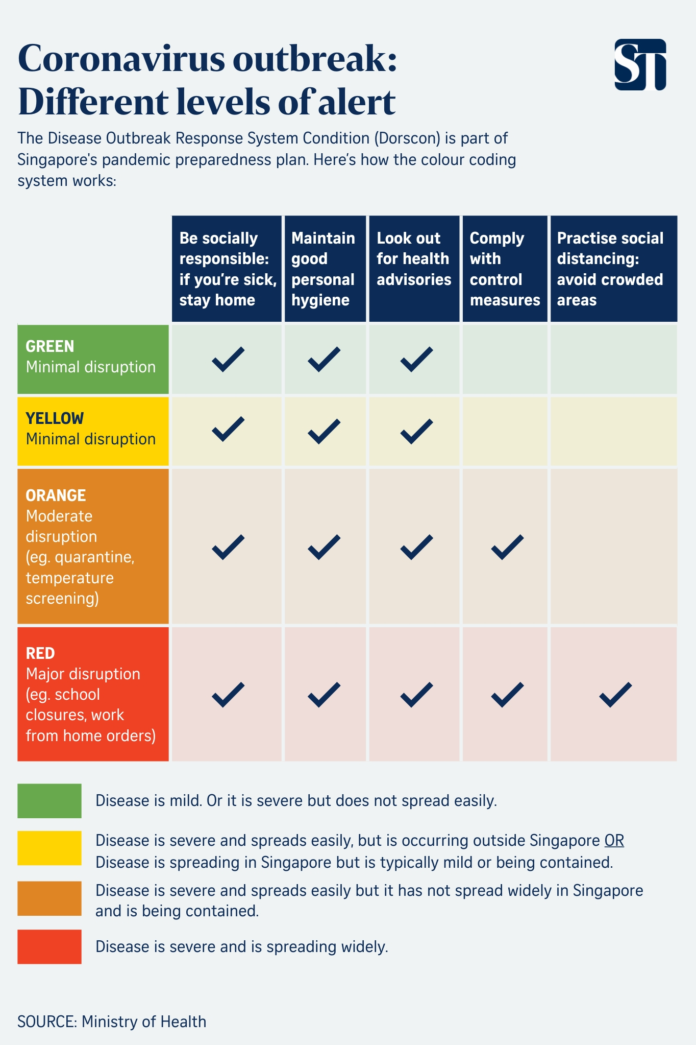 Untuk pengetahuan anda, DORSCON peringkat jingga bermakna penyakit dianggap teruk dan mudah berjangkit daripada manusia ke manusia tetapi tidak terlalu meluas dan sedang dibendung.