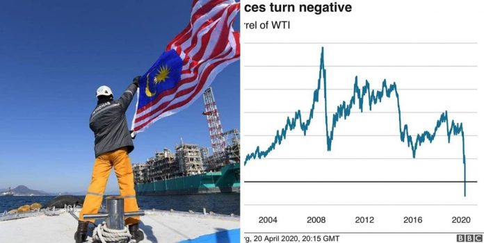[UPDATE 2.30am 21 April 2020] Harga pasaran minyak dunia untuk May 2020 ditutup pada harga -37.36 USD per barrel. Negatif tau… negatif!