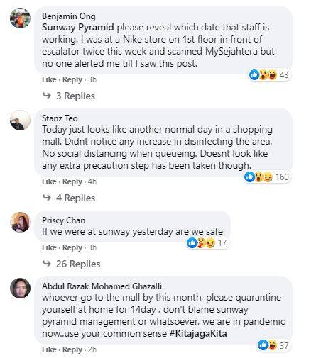 Terbaru, satu posting dilaman facebook pusat membeli belah popular Sunway Piramid mengejutkan semua apabila dalam satu kenyataannya berkata, satu kedai peralatan sukan telah ditutup pada minggu lepas selepas seorang kakitangannya yang mempunyai rekod perjalanan ke tempat lain disahkan positif COVID-19.