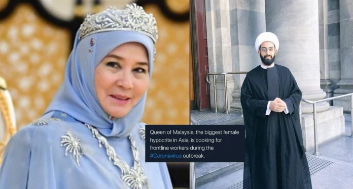 Menerusi tweet yang ditulis itu, dia berkata “Queen Malaysia adalah wanita paling hipokrit di Asia, memasak untuk petugas barisan hadapan ketika wabak Coronavirus.