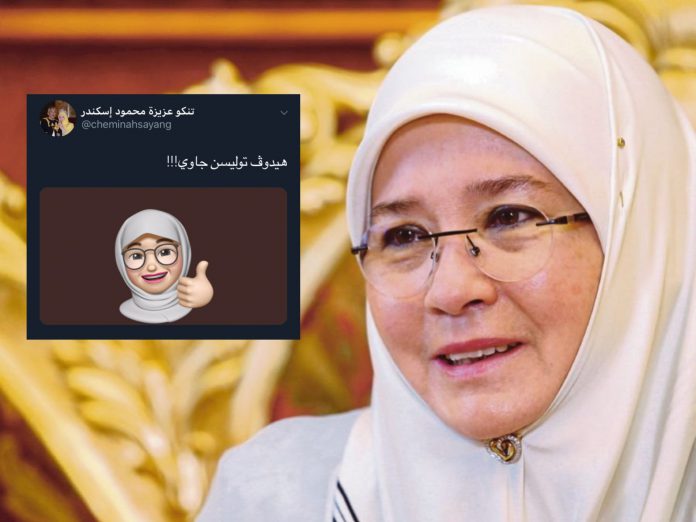 Menerusi akaun Twitter, Tunku Azizah telahpun memulakan inisiatif memuat naik Tweet dalam tulisan Jawi sejak beberapa hari yang lalu.